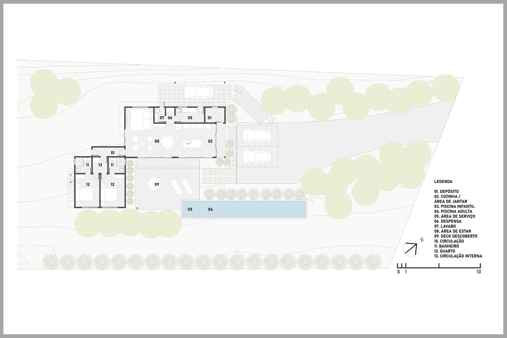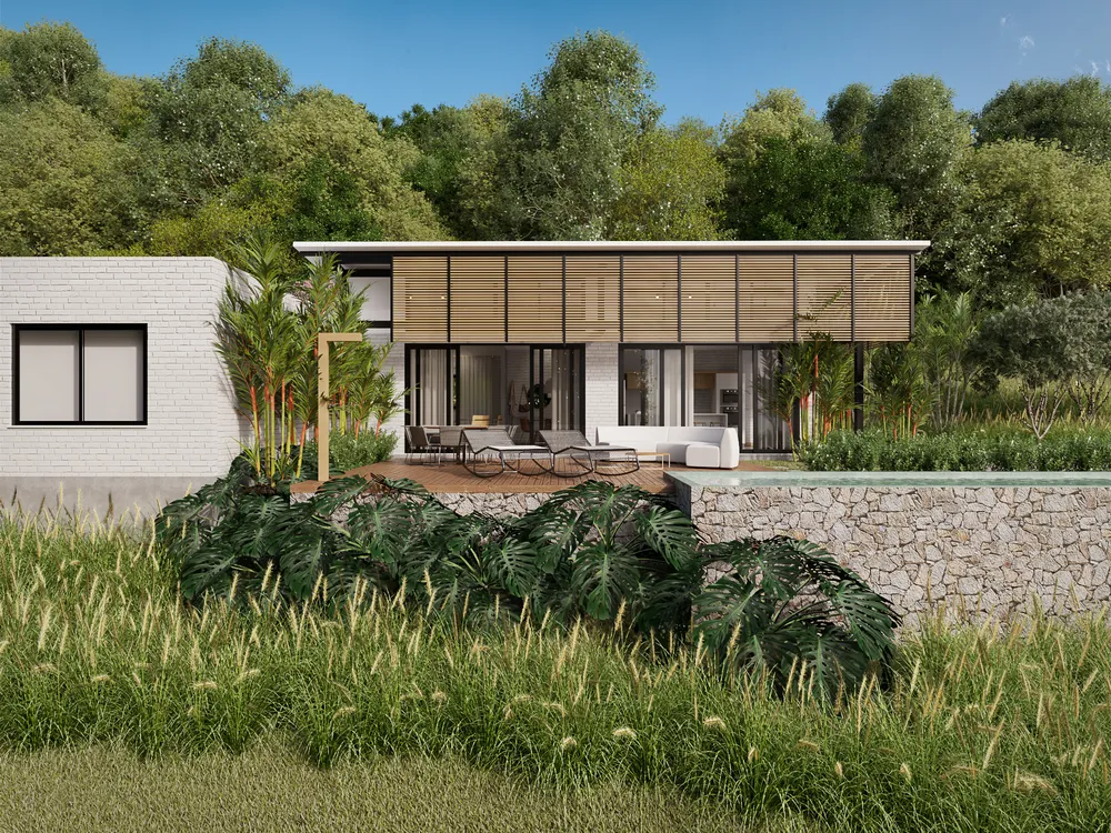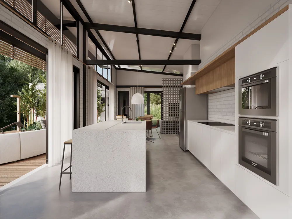 A Casa do Congo é a representação da vontade de um casal em se isolar em meio a região metropolitana. Com terreno de mata quase virgem a casa possui 150m², área social integrada e quartos isolados. O estudo de insolação foi levado em consideração para iniciar a volumetria da casa, as maiores aberturas estão voltadas para o sol da manhã com proteção de brises de madeira roliça, material que integra a estética do entorno imediato. A piscina foi posicionada para o pleno sol diário e os materiais de vedação das paredes voltadas terão proteção térmica para que a temperatura da casa se mantenha sempre em conforto térmico durante boa parte do ano. A Casa do Congo é um verdadeiro refúgio em meio à cidade. Com terreno de mata quase virgem, possui área social integrada e quartos isolados. As maiores aberturas de luz estão voltadas para o sol da manhã. A piscina foi posicionada para o pleno sol diário, com proteção térmica nas paredes para que a temperatura da casa tenha sempre conforto térmico durante boa parte do ano.